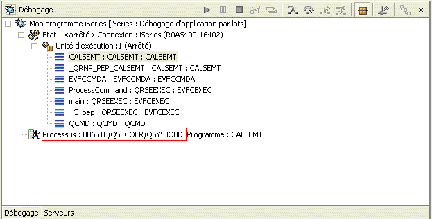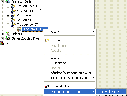 et cliquer sur Appliquer (le bouton Déboguer relance la commande STRSRVJOB)