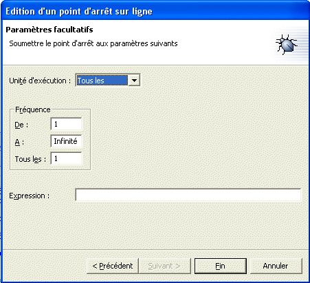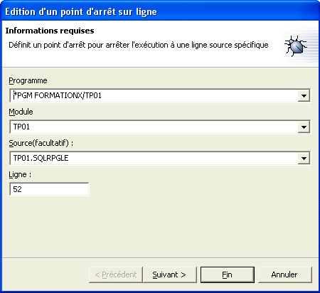 Editer le point d'arrêt, permet de modifier le numéro d'instruction