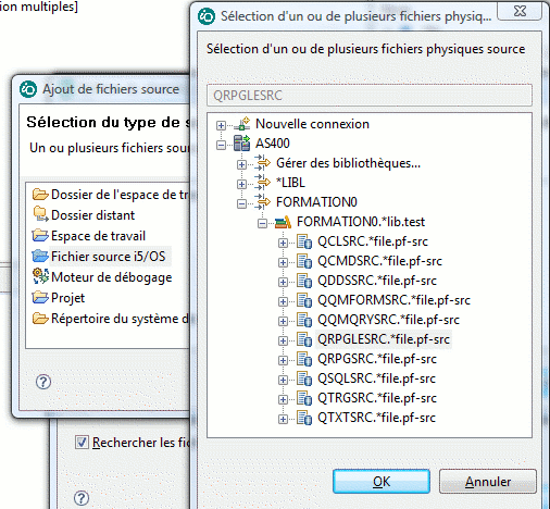 puis choisir Fichier Sources I5/OS (répertoire du système de fichier si vos sources sont dans l'IFS, suivant le langage)