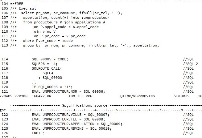 le source généré par le pré-compilateur SQL (type SQLRPGLE) est enfin, en format libre :