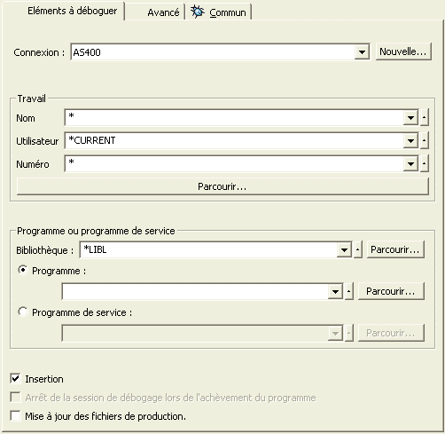 • Debogage d'un travail existant (on passe implicitement la commde STRSRVJOB)