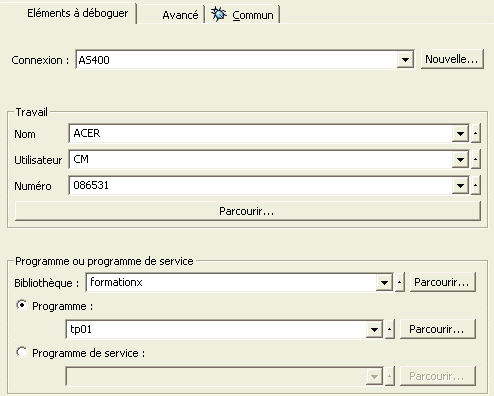 et cliquer sur Appliquer (le bouton Déboguer relance la commande STRSRVJOB)