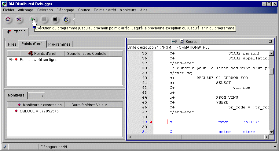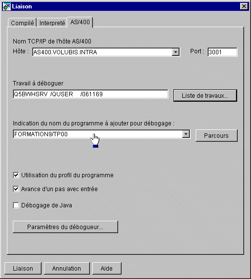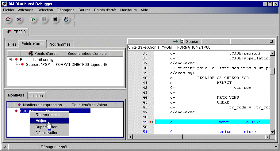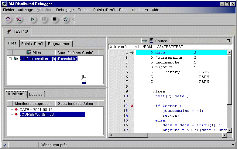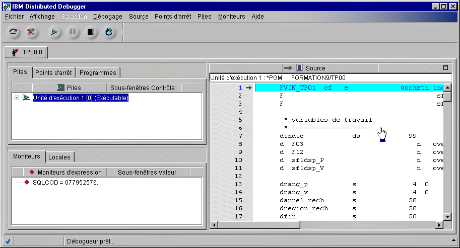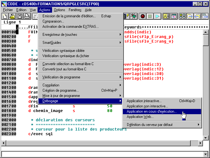 Le plus simple pour débogger un programme est de passer par l'éditeur CODE/400 :