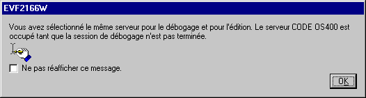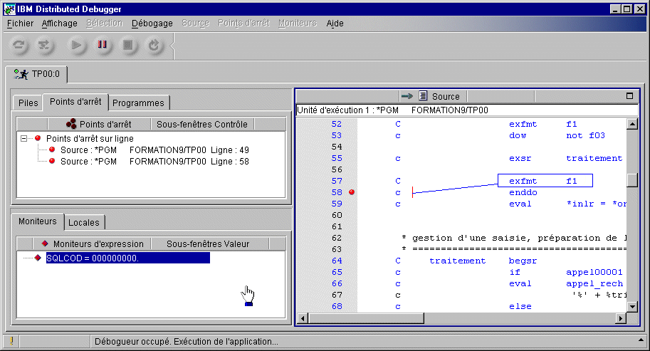 si vous êtes bloqué sur une E/S 5250, Distributed debuger attend une réponse