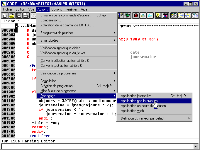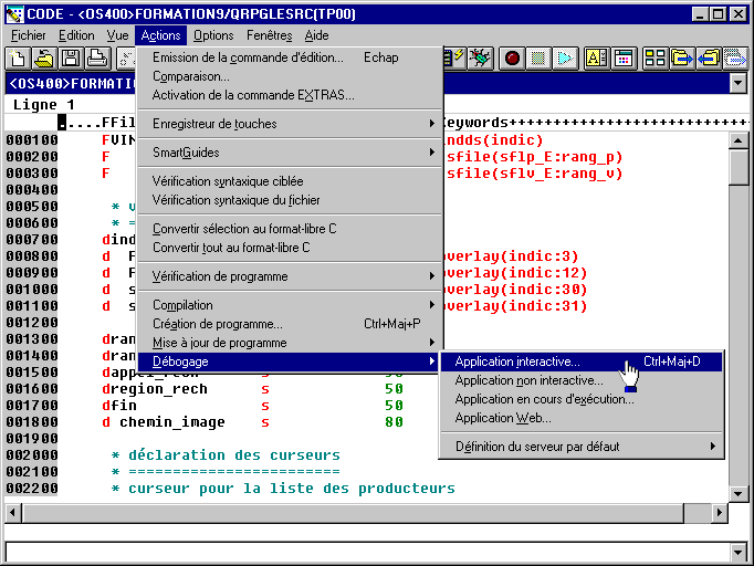 dans le menu Action, choisissez débogage et indiquez s'il s'agit d'un pgm Interactif ou non.: