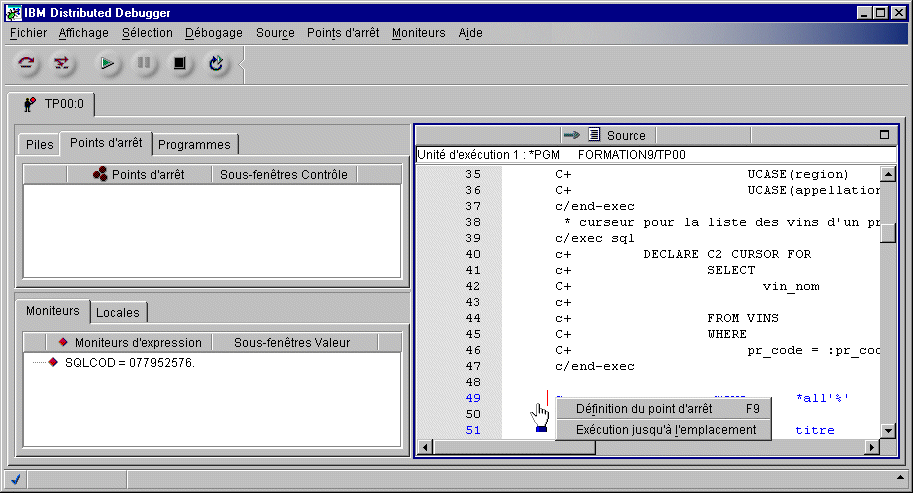 La définition de point d'arrêt peut-être sophistiquée (comme avec le debug/400) :